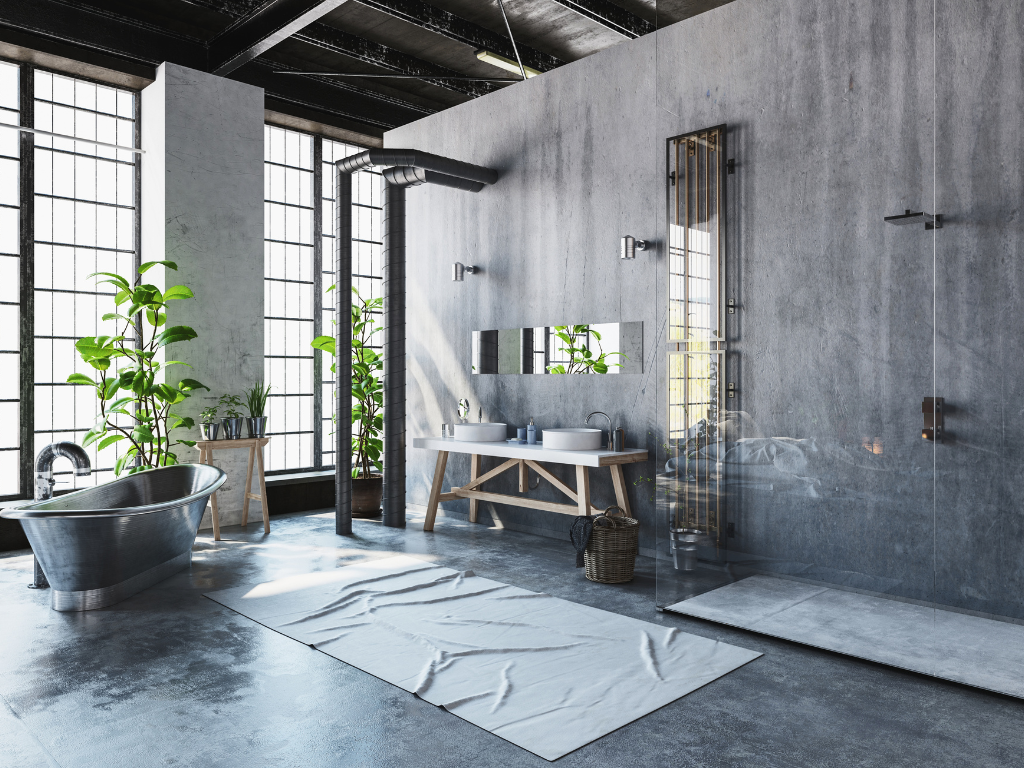 Industrializm to styl inspirowany fabrykami i magazynami. W łazienkach oznacza: