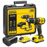 Bezszczotkowa wiertarko-wkrętarka udarowa 18V STANLEY FATMAX V20 z dwoma akumulatorami 2,0Ah i kufrem