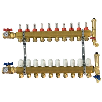 Rozdzielacz mosiężny REITER RMCO#210-45-10 ogrzewanie grzejnikowe rozstaw 45 mm 10 obwodów