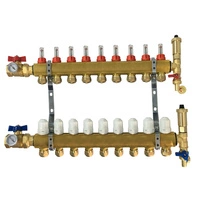 Rozdzielacz mosiężny Hydroland ROZDZ.H.09.ZK do ogrzewania podłogowego kompletny z zaworami kulowymi 9 obwodów