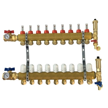 Rozdzielacz Perfexim PHA-100/H 30-100-0802-030 mosiężny 8 obwodów bez nypli PN10 45 mm