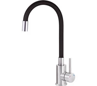 Bateria LUNO stal-czarna zlewozmywakowa z elastyczną wylewką DEANTE BOC_B720