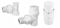 Zestaw zaworów grzejnikowych zasilający powrotny głowica term, biały kątowy FERRO ZTM31WH