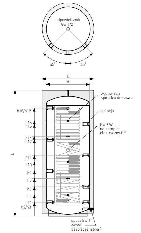 Wydajne ogrzewanie: Duża powierzchnia i objętość wężownicy SPIRAFLEX, do 8 m2 i 56 l oraz rozłożenie jej w całym zbiorniku zapewniają wysoką wydajność systemu ogrzewania wody użytkowej. Wymiennik w górnym zakresie bufora ma za zadanie szybko dostarczyć c.w.u., natomiast w dolnym odpowiada za wstępne podgrzanie wody i schłodzenie zbiornika. Niska temperatura w dolnych partiach zbiornika – powrotu – jest szczególnie korzystna w przypadku zasilania bufora przez kotły kondensacyjne.