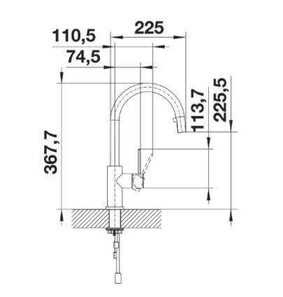 • Wylewka wykonana ze stali szlachetnej, powierzchnia szczotkowana