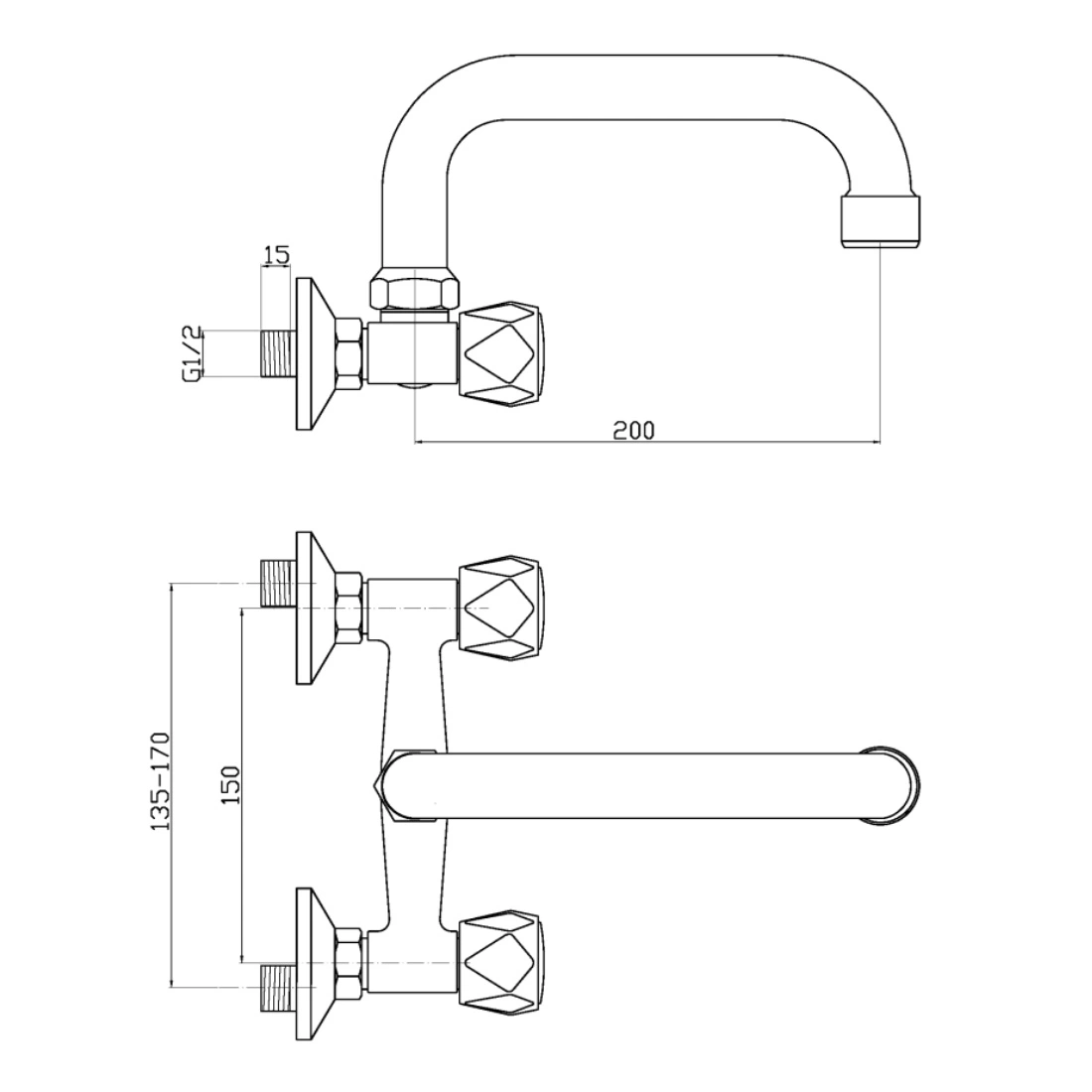 Wylewka: U, długość 200 mm