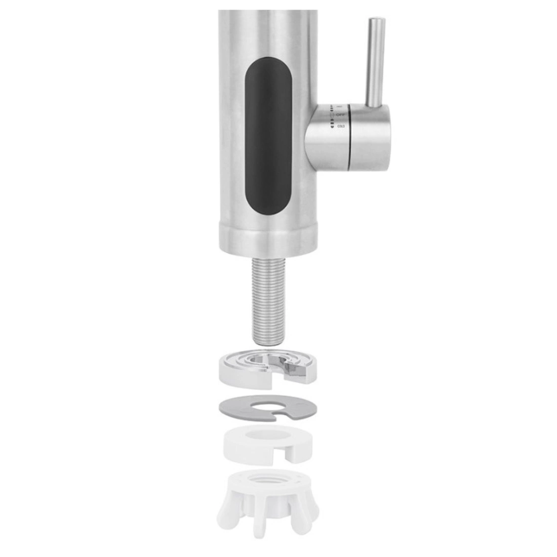 Model NOVEEN IWH560 INOX to nowoczesna bateria sztorcowa wyposażona w elektryczny podgrzewacz wody o mocy 3 kW. Urządzenie zapewnia natychmiastowy dostęp do ciepłej wody, dzięki czemu świetnie sprawdzi się w kuchni, łazience, warsztacie, domku letniskowym czy na działce – wszędzie tam, gdzie nie ma centralnej instalacji ciepłej wody.
