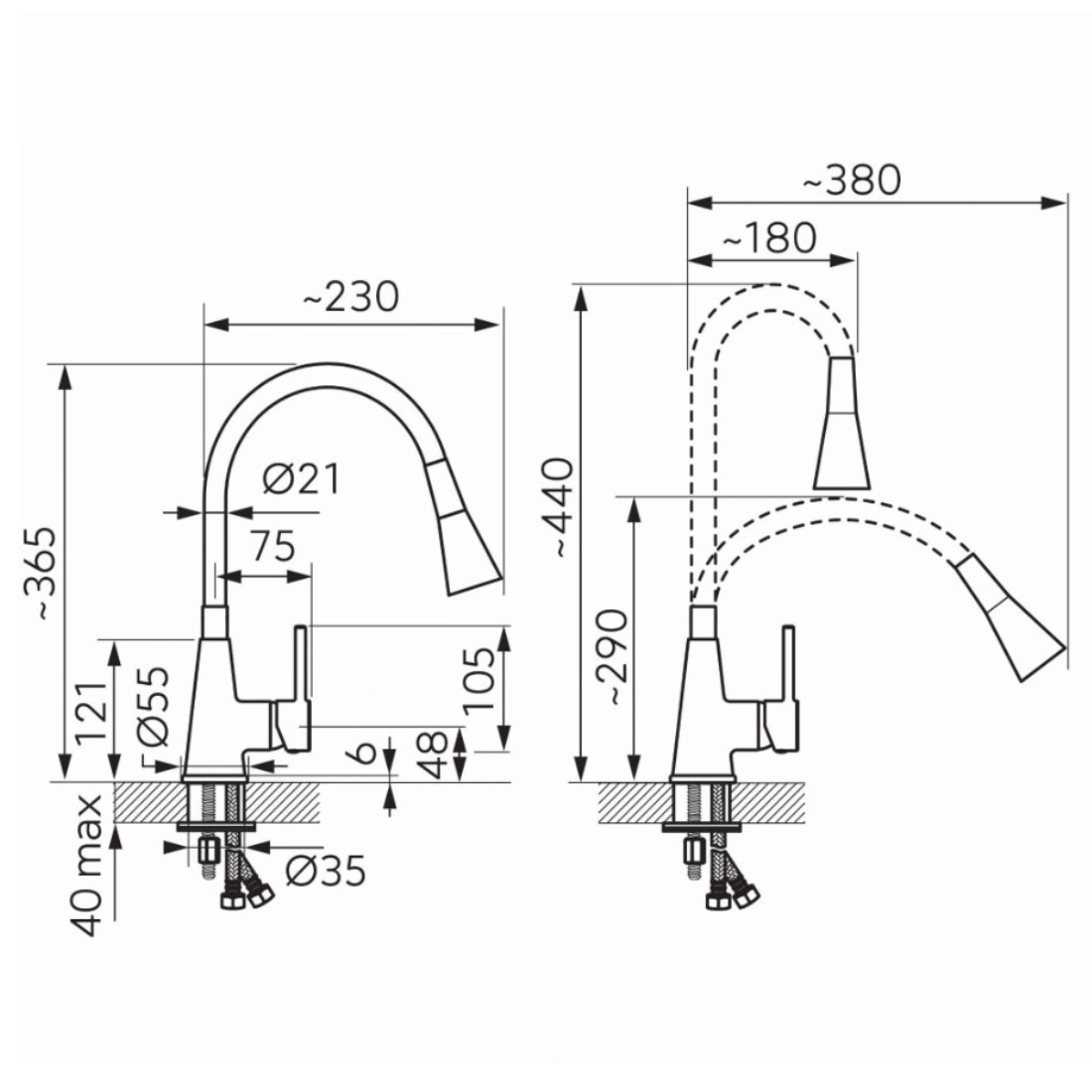 • elastyczna wylewka – swobodna regulacja kierunku wody