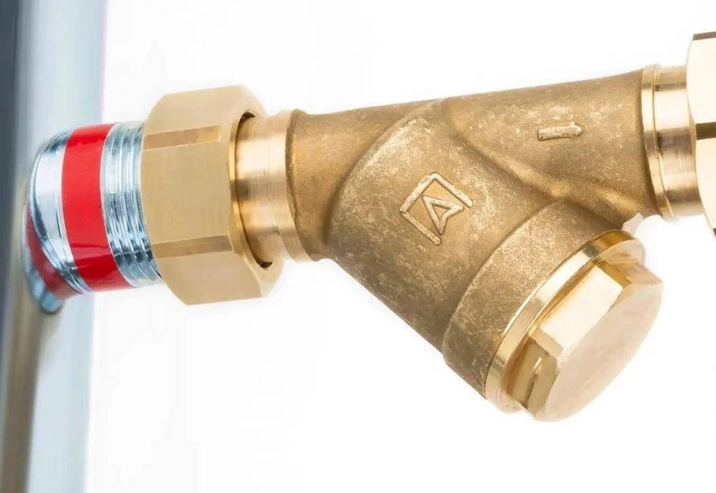 Zawór zwrotny wbudowany w trójniku na przyłączu powrotnym.