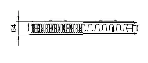 • Typ 12: Dwupłytowy z jednym konwektorem i osłonami, zasilany szeregowo, z wkładką rozdzielającą therm-x2. Osłona górna i boczna, z korkami: odpowietrzającym i zaślepiającym