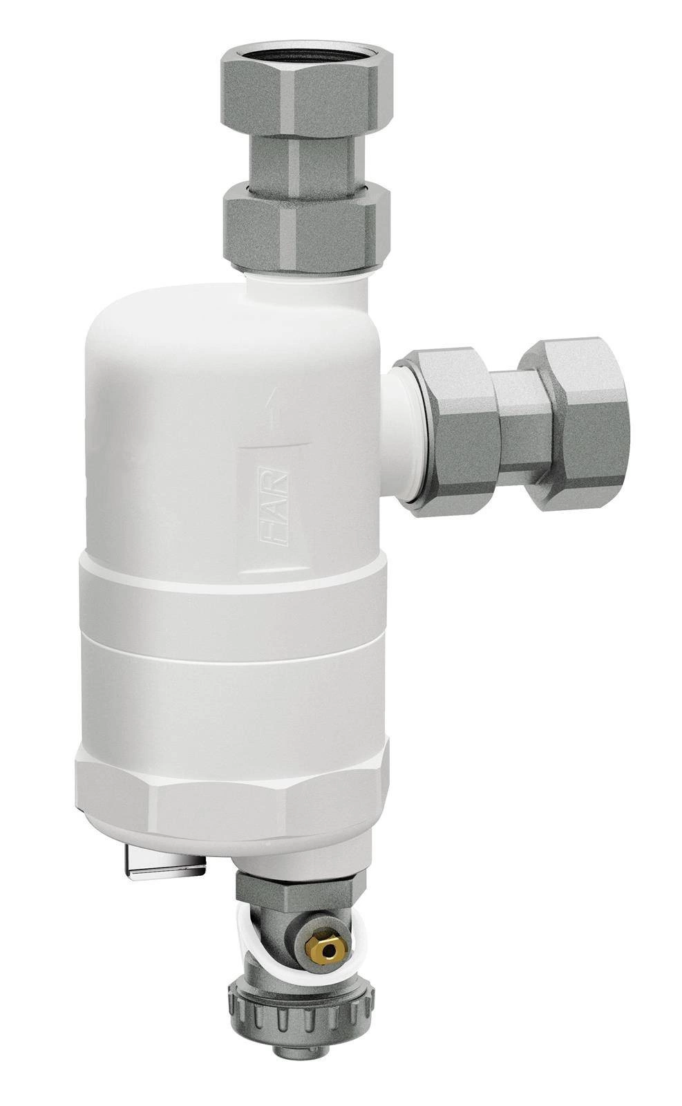 Kompaktowy separator zanieczyszczeń FAR 401 z przyłączem kątowym montowany jest w instalacjach centralnego ogrzewania oraz chłodniczych. Służy do usuwania zanieczyszczeń stałych, które mogą powodować uszkodzenie elementów instalacji. Dzięki kompaktowym rozmiarom separatory zanieczyszczeń z tej serii mogą być montowane na rurociągach poziomych bezpośrednio pod kotłami wiszącymi, gdzie nie ma możliwości montażu tradycyjnego separatora