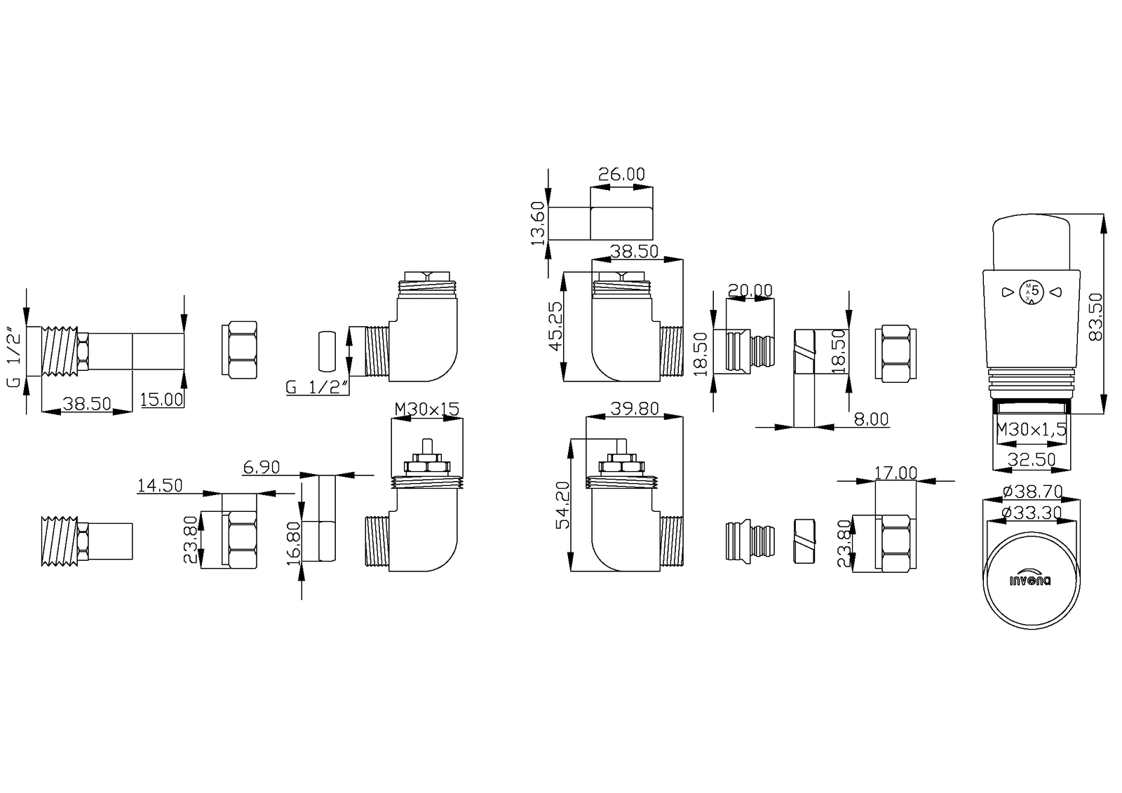 Komplet termostatyczny Invena cd-25-c15-s osiowy czarny prov 1/2"