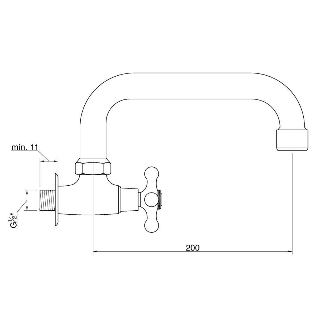 Kran czerpalny ścienny z wylewką typu U o długości 200 mm Modena Invena BU-64-F5S-L