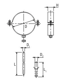 Obejma Valsir VS0395004 M10 fi 56 ocynkowana ze śrubą i kołkiem do punktów stałych i przesuwnych