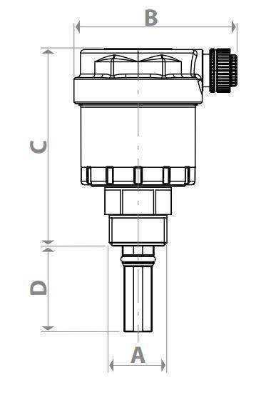 Wymiary techniczne: A: 1/2", B: 47 mm, C: 56 mm, D: 25 mm