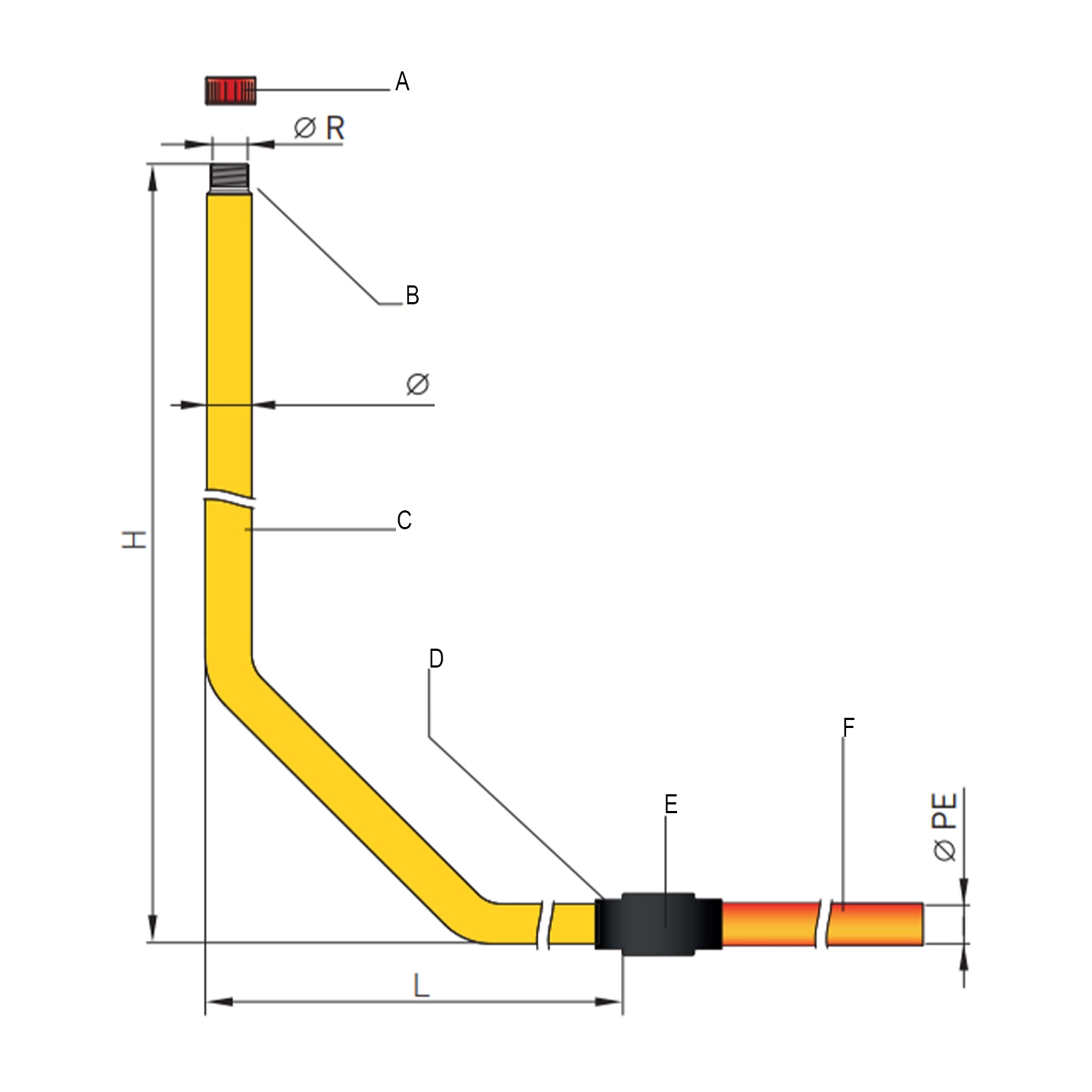 Przyłącze gazu stalowe z rury preizolowanej, PE32 x GZ 1, L=500xH=1500.