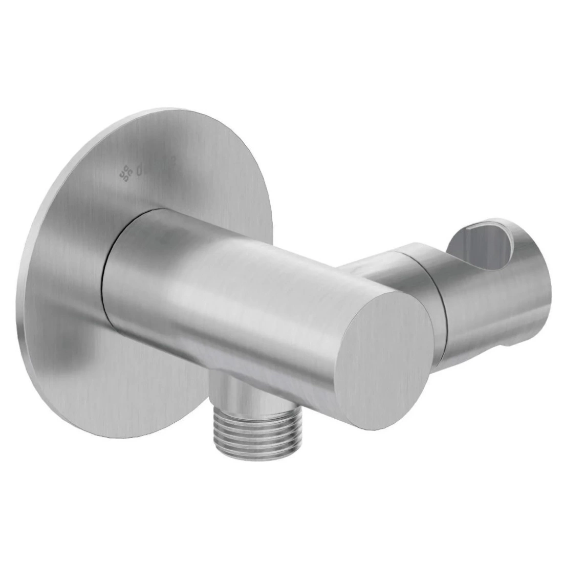Przyłącze kątowe Deante Silia NQS F57K regulowane z uchwytem okrągłe stal szczotkowana