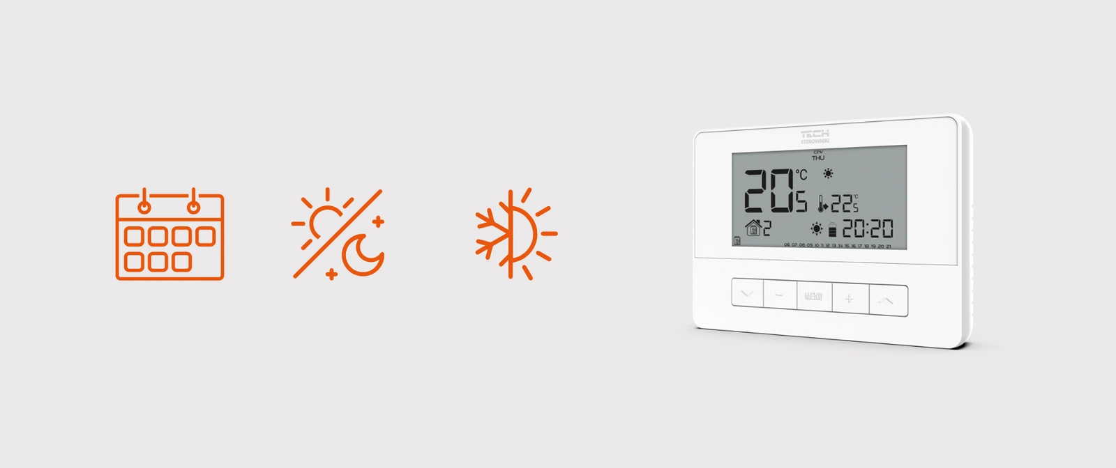 • Funkcja grzanie/chłodzenie: Regulator może pracować zarówno w trybie ogrzewania, jak i chłodzenia.