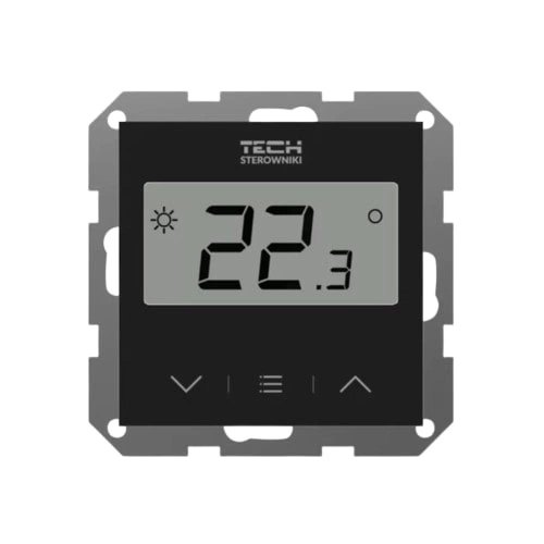 Regulator pokojowy TECH-STEROWNIKI F-12B WG.11.0732 przewodowy, czarny, doramkowy, dedykowany do listwy L-X i L-12