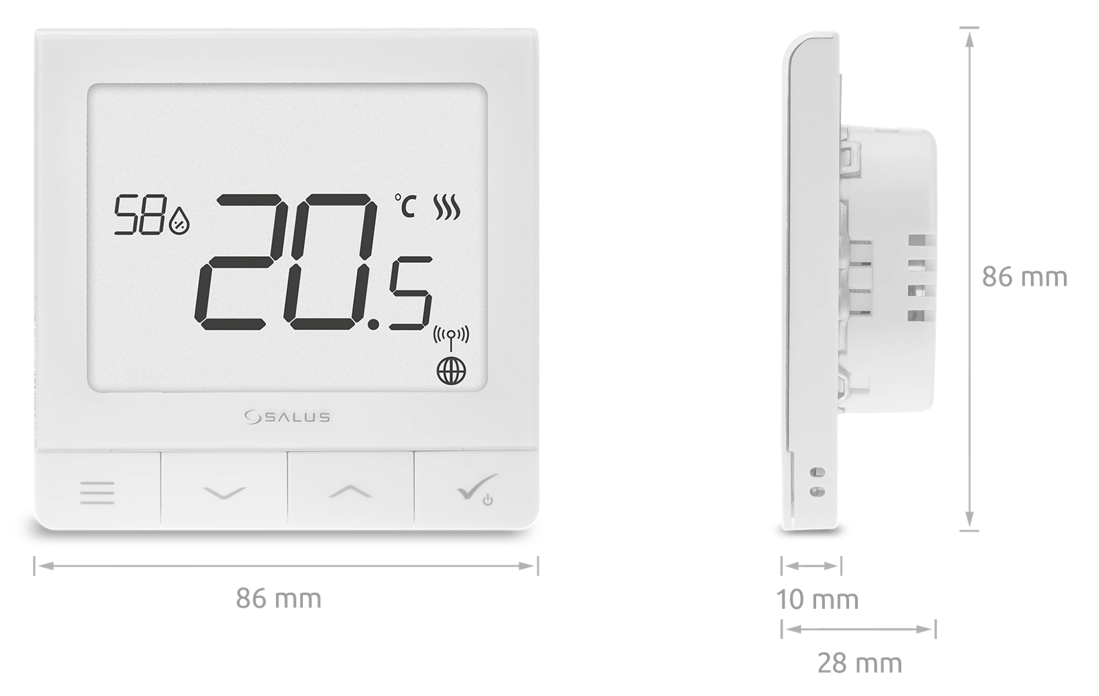 Podtynkowy, wielofunkcyjny regulator temperatury z czujnikiem wilgotności. Wyjątkową cechą tego regulatora jest możliwość sterowania BEZPRZEWODOWEGO urządzeniami serii SALUS Smart Home oraz sterowania PRZEWODOWEGO urządzeniami, które podpina się bezpośrednio do niego (np. przewodowa listwa sterująca, kocioł).