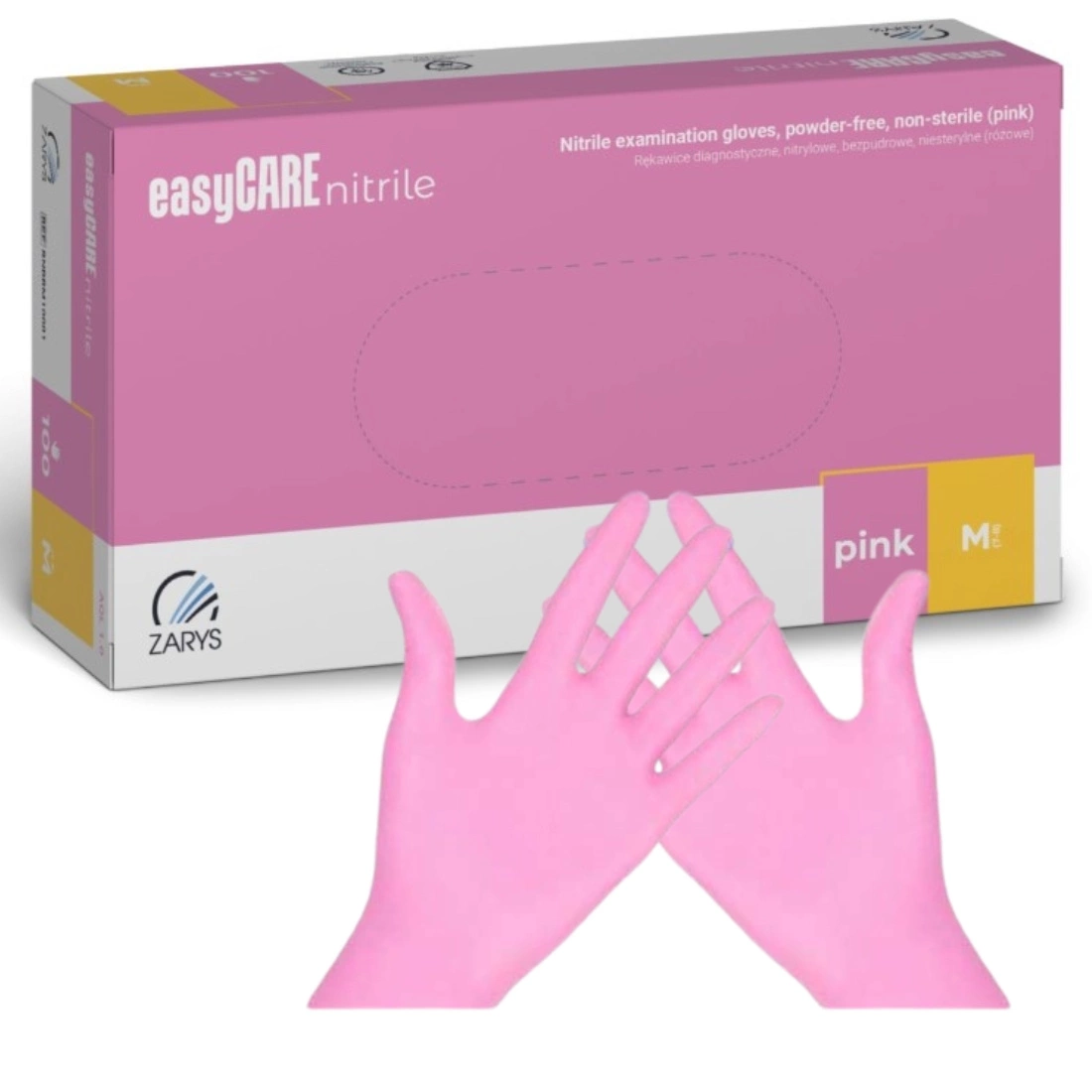 Rękawice diagnostyczne EasyCare Nitrile M – nitrylowe, bezpudrowe, niesterylne, różowe (A100 RNBRM10001)