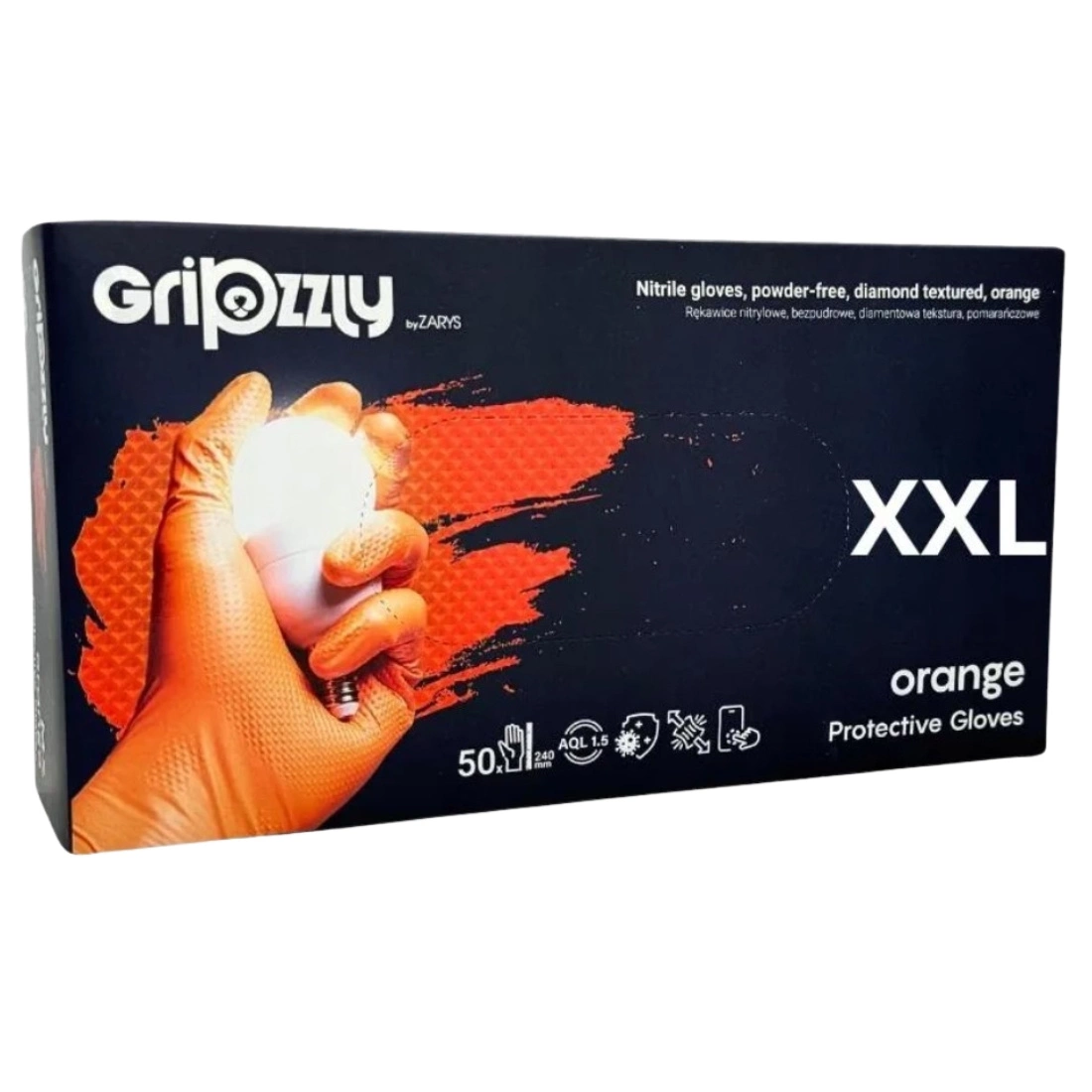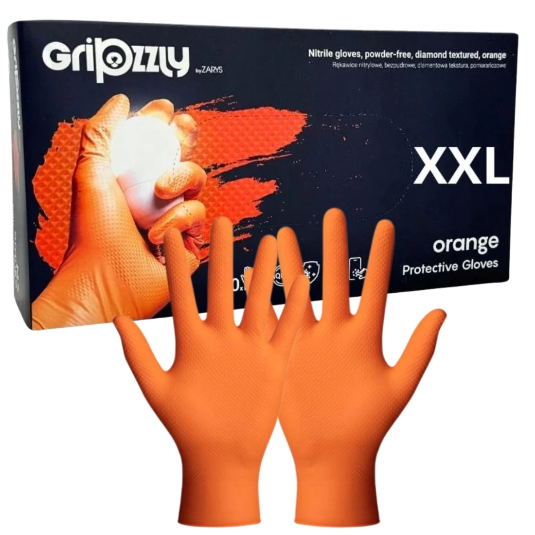 Rękawice Gripzzly Zarys XXL – nitrylowe, bezpudrowe, z diamentową teksturą, pomarańczowe (A50 RNBDPXXL5005)