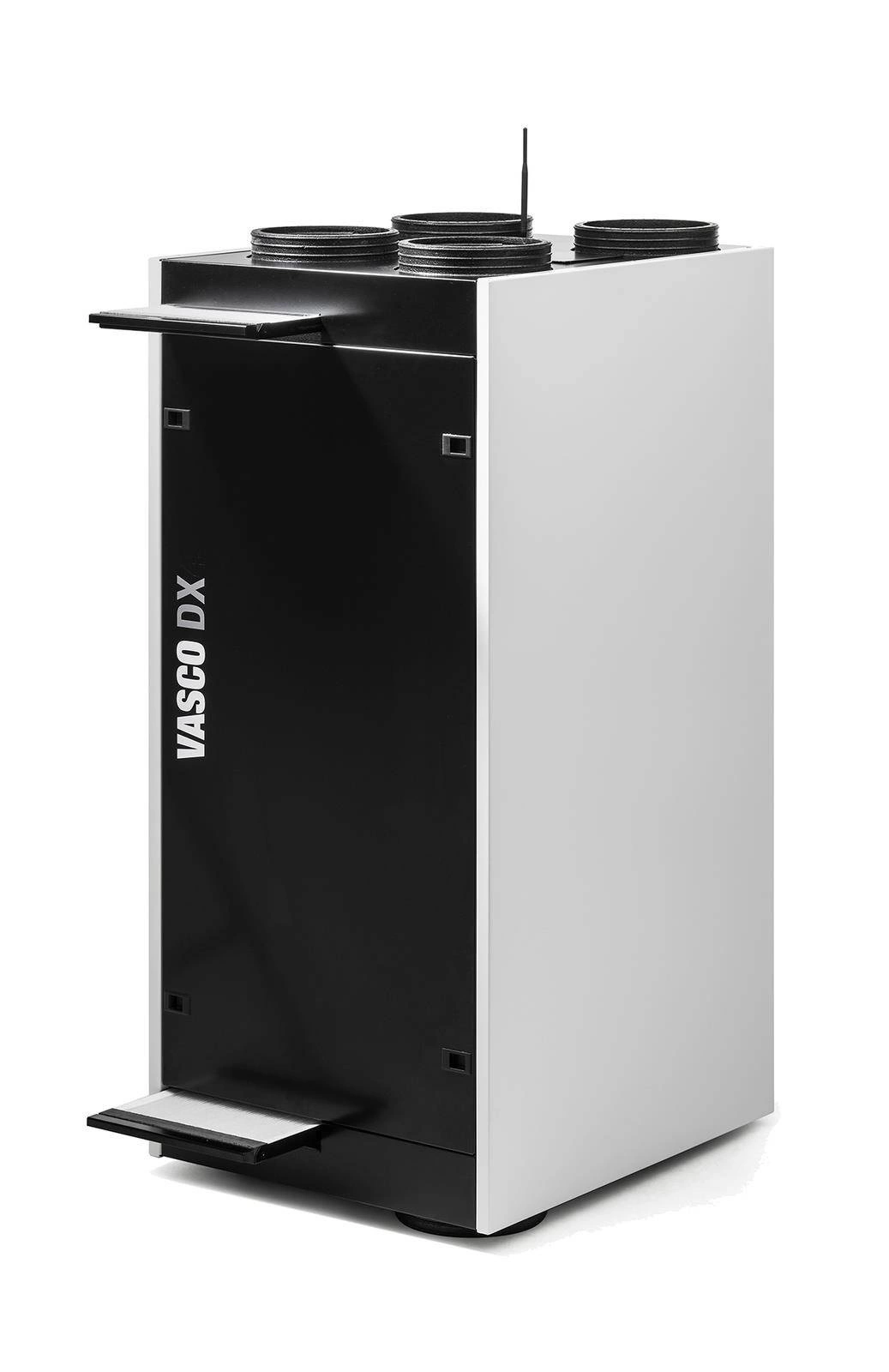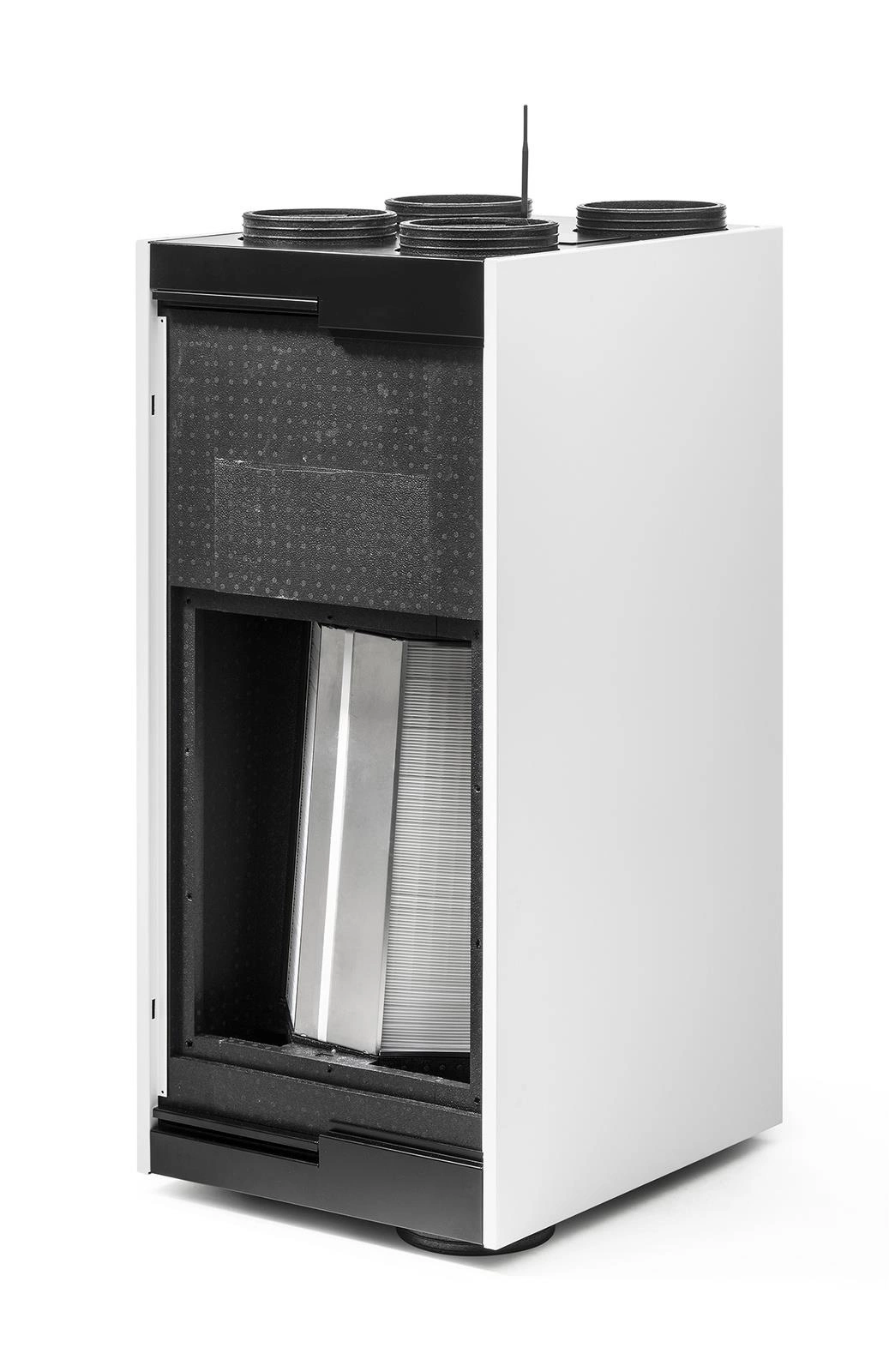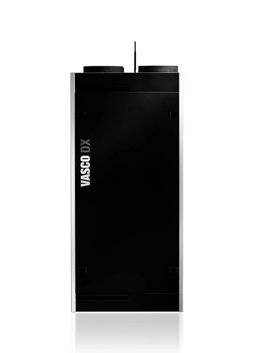 - Wysokowydajny wymiennik ciepła z tworzywa sztucznego oraz energooszczędne wentylatory prądu stałego z łopatkami wygiętymi do tyłu