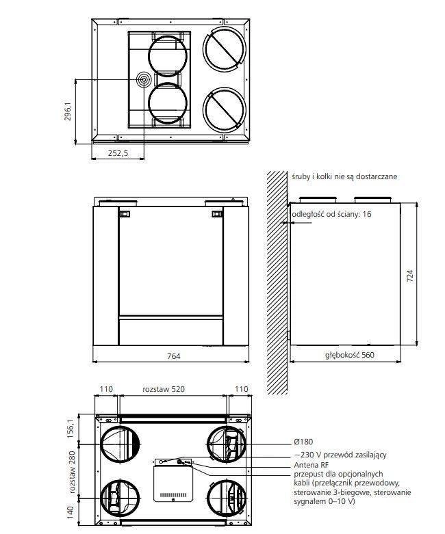 Rekuperator typu X425 (E) to nowoczesne urządzenie wentylacyjne z funkcją odzysku ciepła, zaprojektowane z myślą o zapewnieniu efektywnej i ciągłej wymiany powietrza w pomieszczeniach. Kompaktowa konstrukcja umożliwia wygodny montaż na ścianie, a elastyczność przyłączeń kanałów powietrza pozwala na dopasowanie instalacji do indywidualnych potrzeb.
