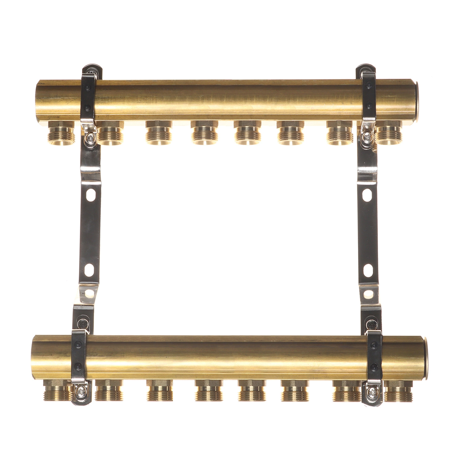 Rozdzielacz mosiężny REITER RMCO#210-45-N-08 ogrzewanie grzejnikowe rozstaw 45 mm + nyple 8 obwodów