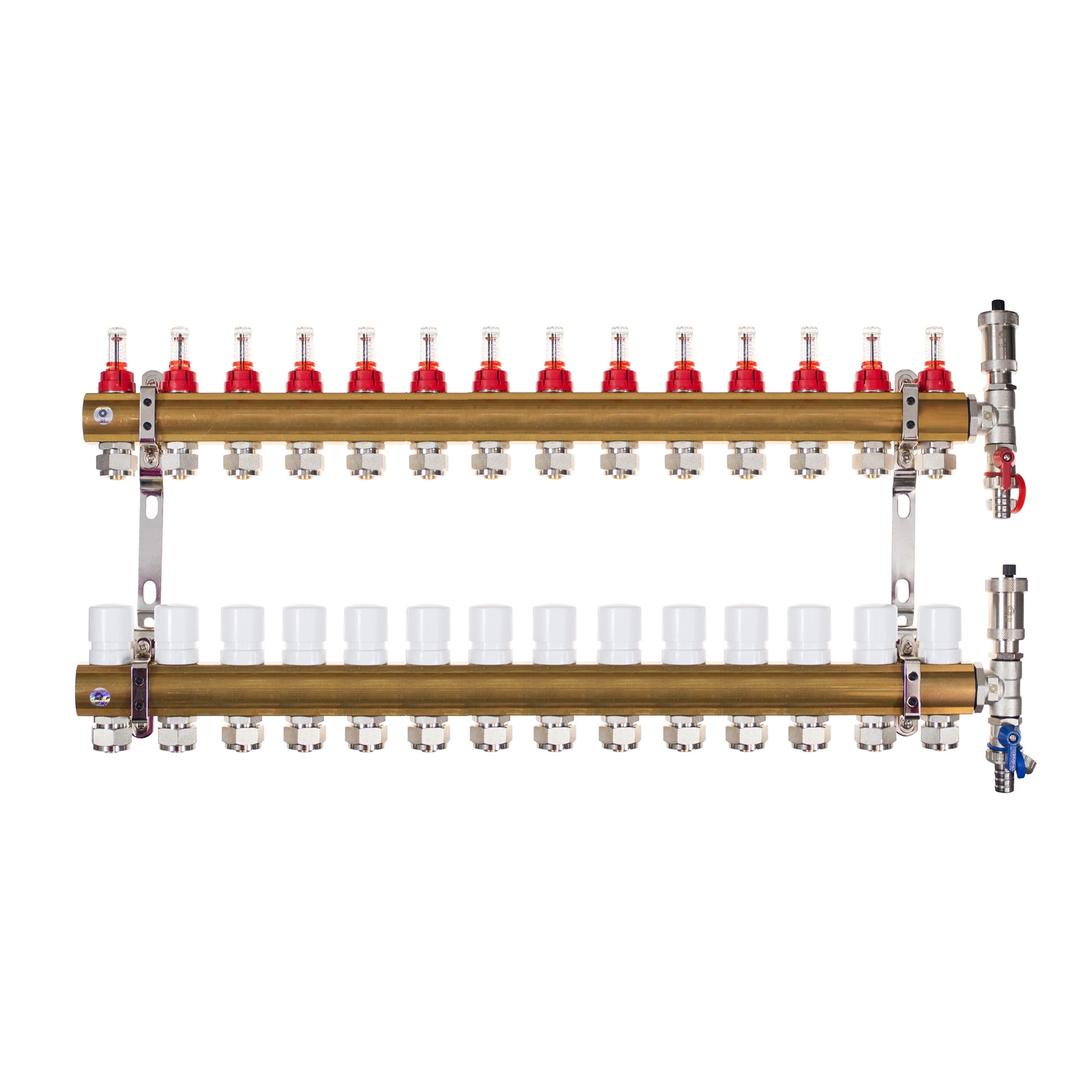 Rozdzielacz mosiężny REITER RMOP#210-KOSA-E-14 ogrzewanie podłogowe rozstaw 50 mm 14 obwodów