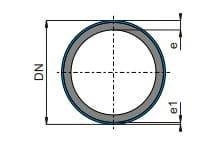 - DN/OD: 125 mm, e: 11,4 mm, e1: 2,0 mm