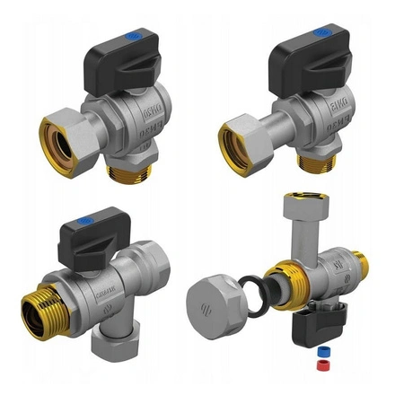 Dzięki kątowej budowie zaworów, montaż zajmuje mniej miejsca, a instalacja wygląda bardziej estetycznie — co ma znaczenie zwłaszcza w nowoczesnych kotłowniach i pomieszczeniach gospodarczych o ograniczonej przestrzeni. Wszystkie zawory w zestawie są zaprojektowane tak, aby pokrętła znajdowały się na tej samej wysokości – to nie tylko ułatwia codzienną obsługę, ale też dodaje profesjonalnego wyglądu całej instalacji.