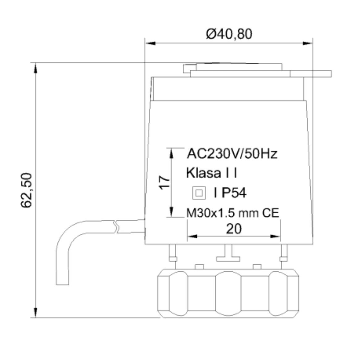 Siłownik termoelektryczny NC/230V/M30 do rozdzielacza Invena CM-NC-A30-Z