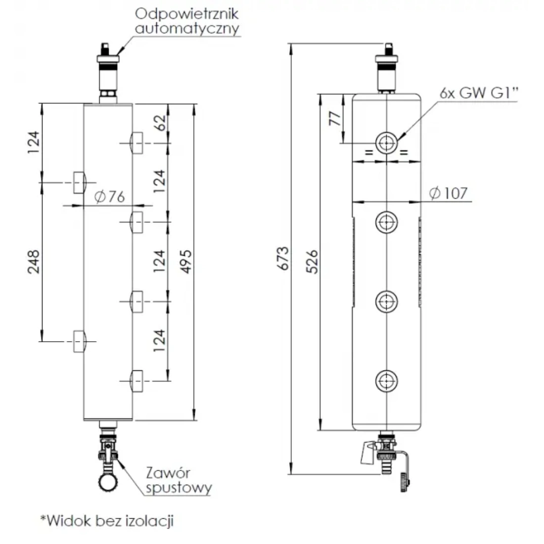 Ocieplone sprzęgło hydrauliczne 70 kW z rozdzielaczem – do instalacji grzewczych i chłodniczych