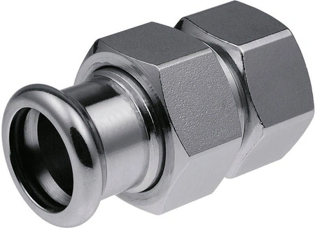 Z jednej strony znajduje się końcówka zaprasowywana na rurę stalową Ø54 mm, która pozwala na szybki i bezpieczny montaż bez konieczności spawania. Druga strona posiada gwint wewnętrzny Rp2″, który pasuje do większości standardowych elementów armatury domowej. Dzięki zastosowaniu uszczelki EPDM oraz profilu zacisku typu M, połączenie jest szczelne i trwałe przez wiele lat eksploatacji.