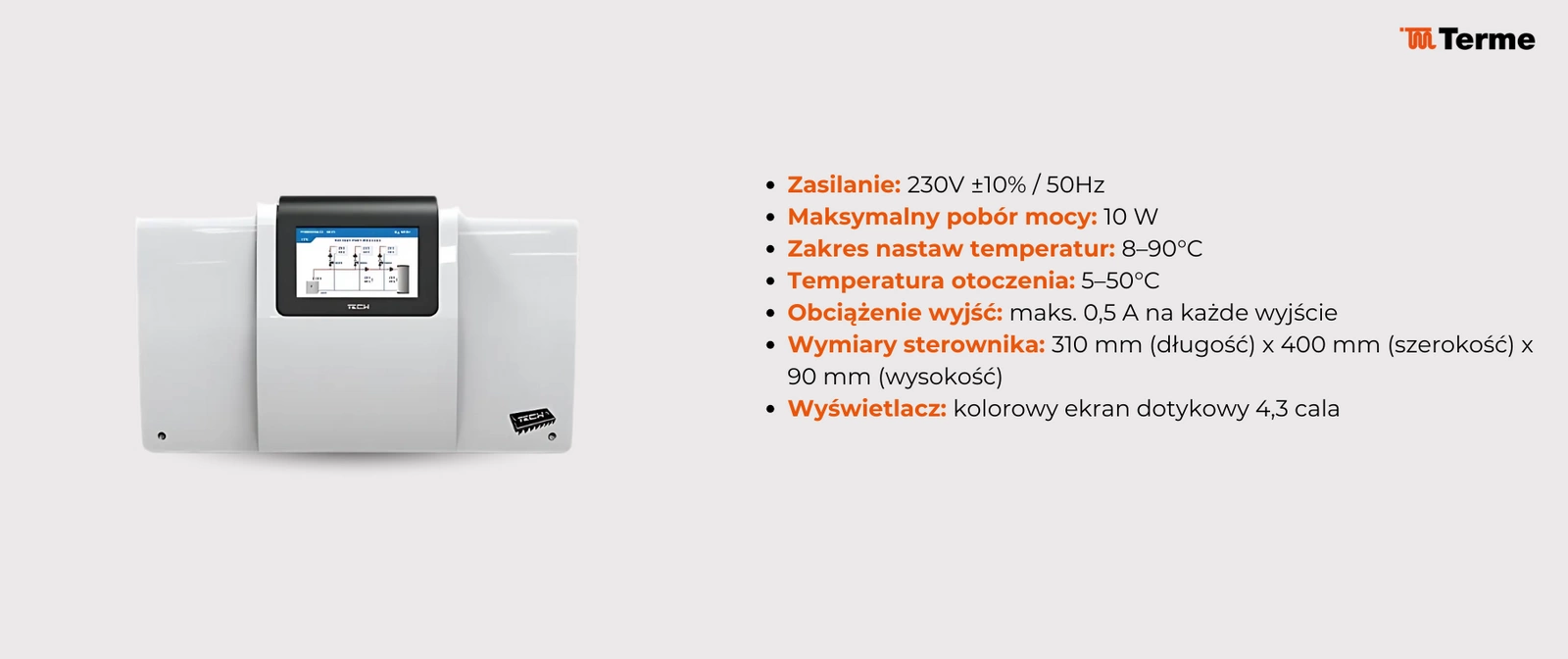 Montaż sterownika jest szybki i prosty, dzięki dołączonym akcesoriom i czytelnym instrukcjom. Urządzenie można zamontować w pobliżu kotła lub w pomieszczeniu technicznym. Duży, kolorowy wyświetlacz dotykowy zapewnia wygodną konfigurację parametrów, a intuicyjne menu prowadzi użytkownika krok po kroku przez proces ustawień.