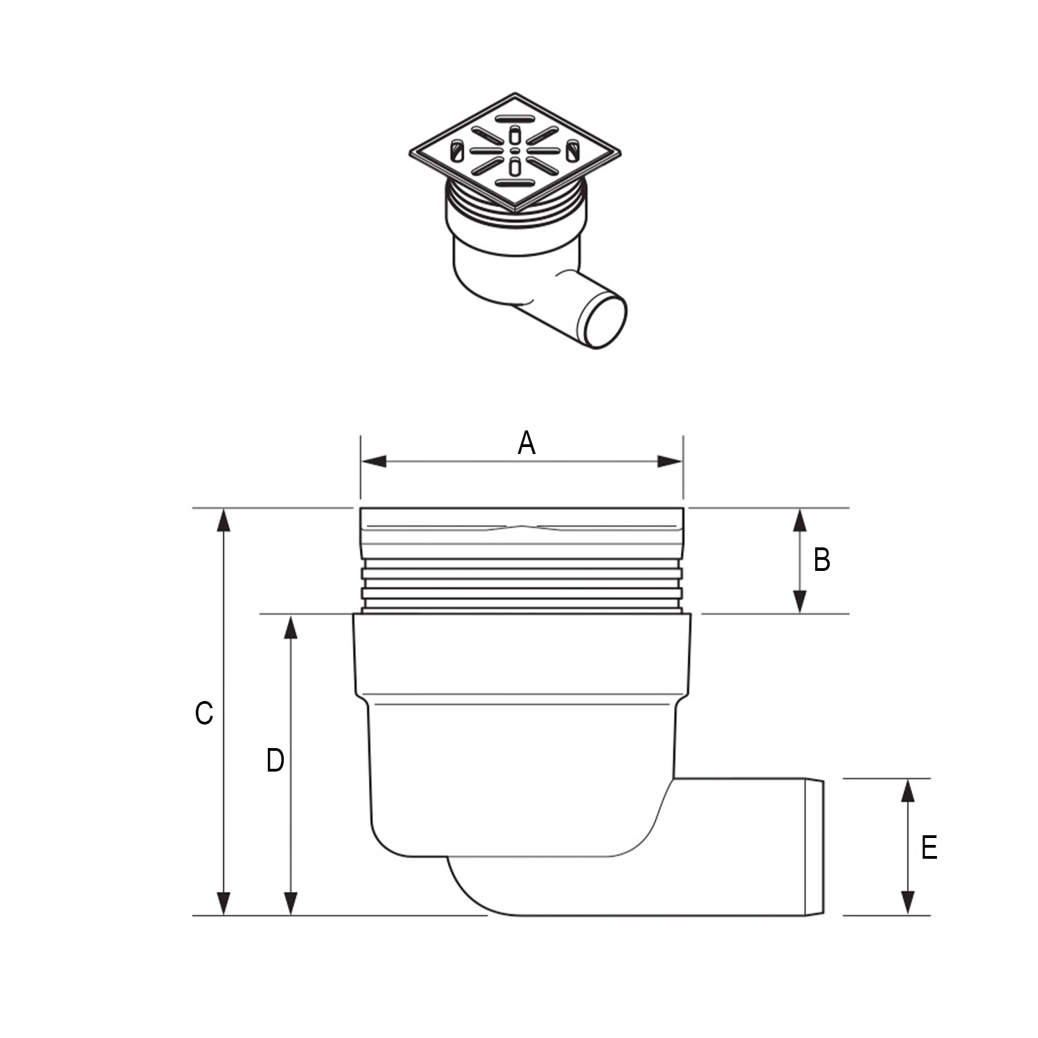 Wpust punktowy odpływ boczny standard UPONOR AQUA AMBIENT 1136456 100X100 mm FI 50
