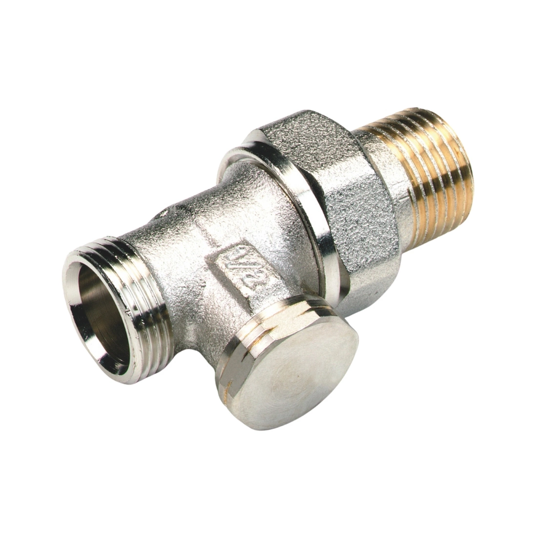 Zawór gwintowany prosty niklowany z regulacją nastawy i odcięciem przepływu 1/2" x 3/4" EURO