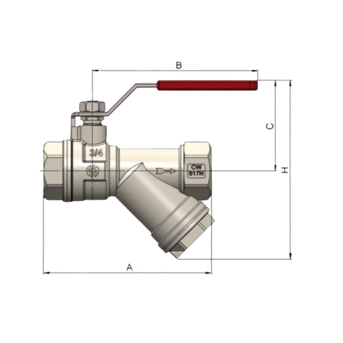Zawór kulowy wodny Arco Sena VA30 752304 3/4" GW-GW z filtrem dźwignia inox