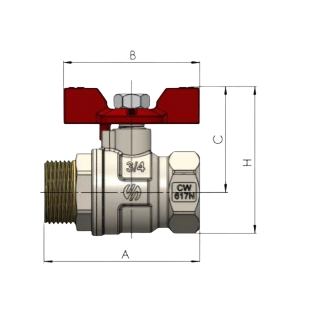 Zawór kulowy wodny Arco Sena VA30 753605 1" GZ-GW uchwyt motylkowy