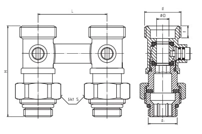 Zespół zaworów grzejnikowych 7006+8021 G1-2XG3-4 PN10 DN15