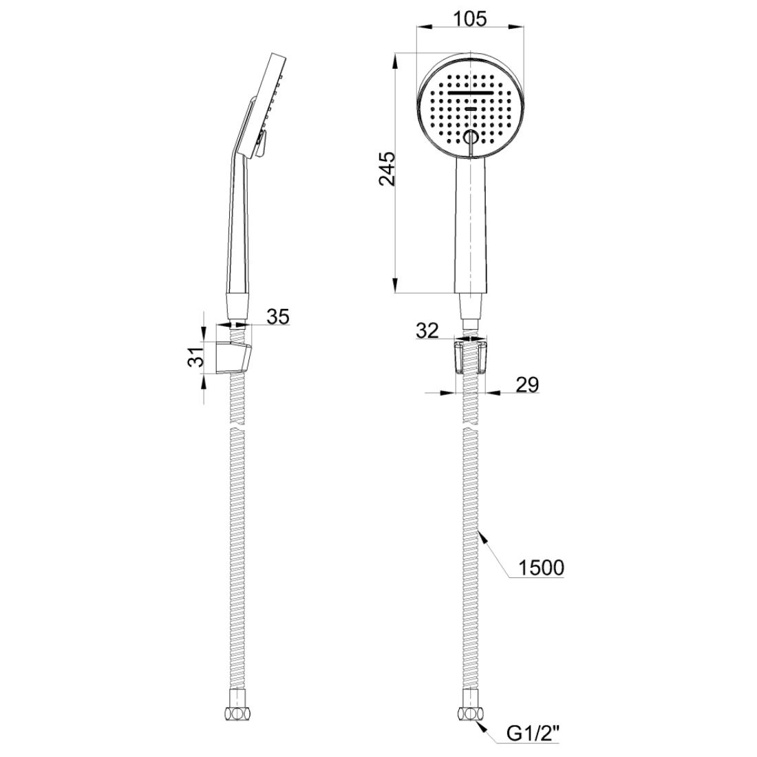 Model 1-punktowy z dwoma funkcjami natrysku (standardowy + deszczowy / masażowy) pozwala dopasować rodzaj strumienia do indywidualnych potrzeb — od delikatnego płukania po intensywny masaż ciała.