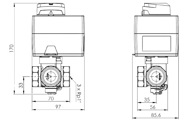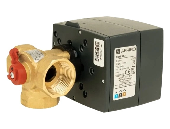 Zestaw regulacyjny Afriso ProClick 1338454 3-drogowy obrotowy zawór mieszający ARV 384 Vario ProClick DN25 Rp1" Kvs 4,5 - 12 m3/h + siłownik elektryczny ARM 343 ProClick