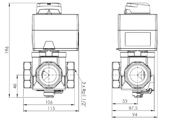 Zestaw regulacyjny Afriso ProClick 1338654 3-drogowy obrotowy zawór mieszający ARV 386 Vario ProClick DN40 Rp1 1/2" Kvs 14 - 36 m3/h + siłownik elektryczny ARM 343 ProClick