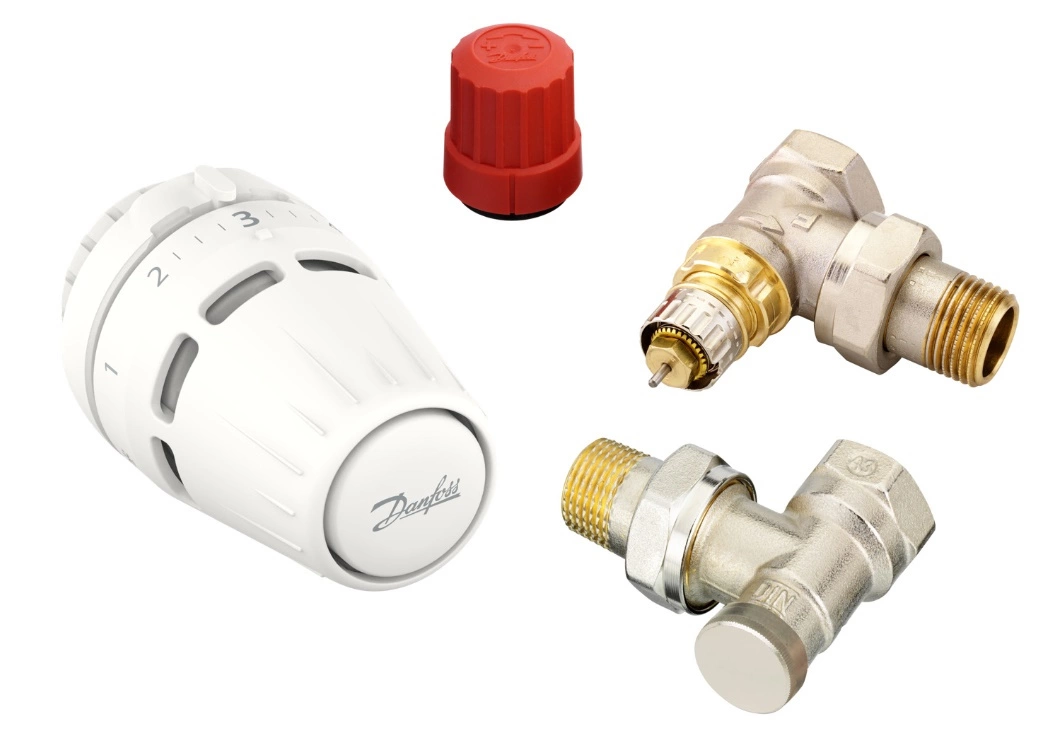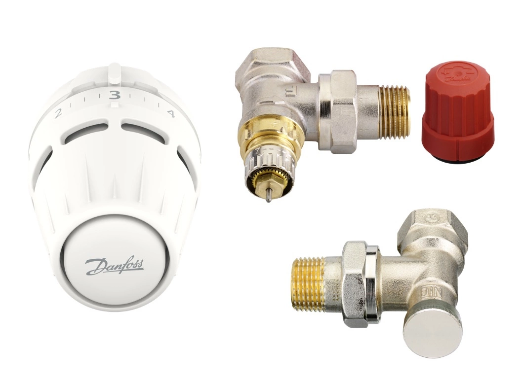 Zestaw z głowicą Danfoss Regus, zawór RA-N i odcinający RLV-S.
