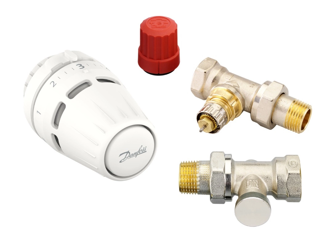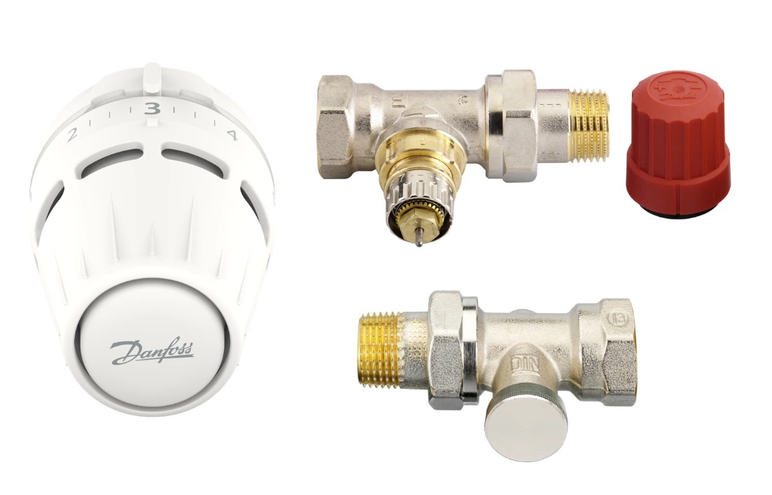 Zestaw z głowicą Danfoss Regus, zawór RA-N i odcinający RLV-S.